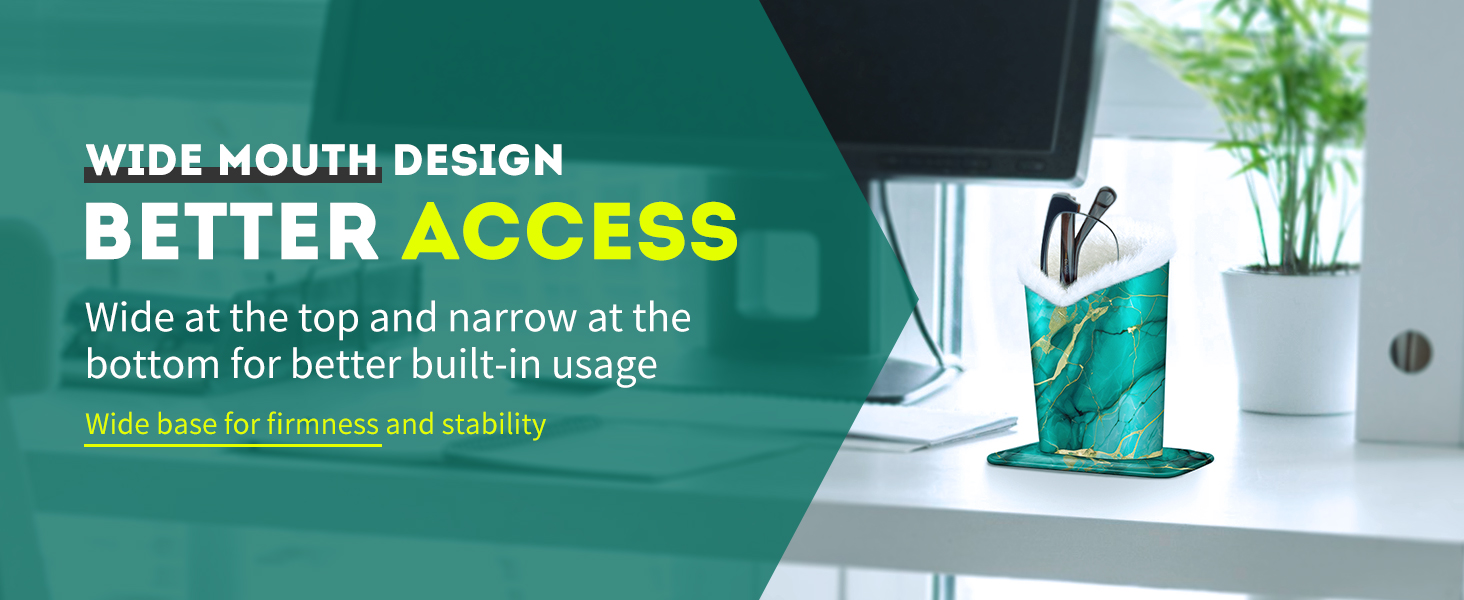 Great place to safely set glasses when not wearing them. I like the plush interior to pad and keep glasses safe. The outside design choices are pretty. Set it by your bedside, or sitting chair for convenience.