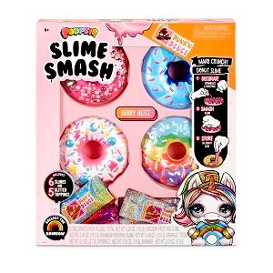 The Poopsie Slime Smash Candy Craze with Crunchy Donut Slime is an innovative crafting kit that includes 4 adorable donut-shaped slimes, 6 vibrant slimes, and 4 glitter toppings, all packaged in a fun Dunkin' Deuce parody box. Kids can create, decorate, and smash their way to a unique slime experience while collecting all 16 donut designs.