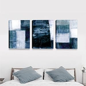 Kaupuar 3 Pieces Canvas Wall Art Gray Blue Abstract Art | Desertcart Croatia