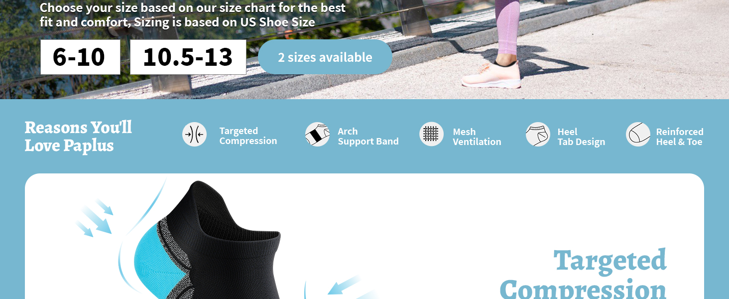 PAPLUS Compression Running Socks Women (6 Pairs), Ankle Athletic Socks Low Cut with Arch Support