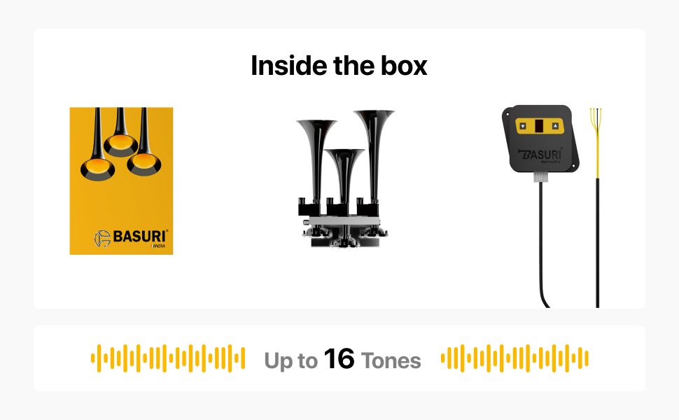 The BASURI Musical Horn (Tri Jumbo) is a high-performance air horn designed for heavy-duty vehicles, featuring 16 loud melodies, a powerful 130 DB output, and a durable construction that ensures longevity and reliability. With a user-friendly installation process and a robust turbo controller, this horn is perfect for buses, trucks, and more.