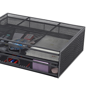 YCOCO Monitor Stand Riser,Metal Mesh Monitor Riser Desktop Stand with 2 Storage Drawers,Multi-Purpose Desktop Storage Stand for Computer,Laptop,Printer,Black