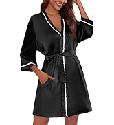 Women's Lace-Trim Silk Robes Bride Bridesmaid Kimono Satin Bathrobe V Neck Sleepwear with 3/4 Sleeve