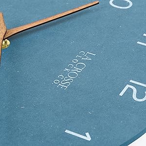 I’m in love with this clock! It is a few shades deeper than the photo represents so be warned. It’s more of a navy blue than the dusty pale blue in the photo but otherwise it’s still stunning with the white letters and the wood hands.We replaced our broken clock that had a plastic front so not having a glare has been an unexpected delight!
