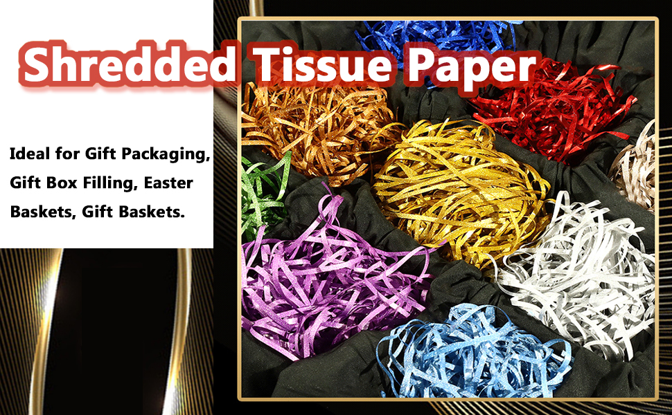 This 100g box of golden Glitter Shredded Tissue Paper is crafted from soft, lightweight raffia paper featuring a patented glitter membrane for superior shine. Designed to protect gifts with shock-absorbing properties, it’s reusable and perfect for enhancing any gift packaging or festive decoration.