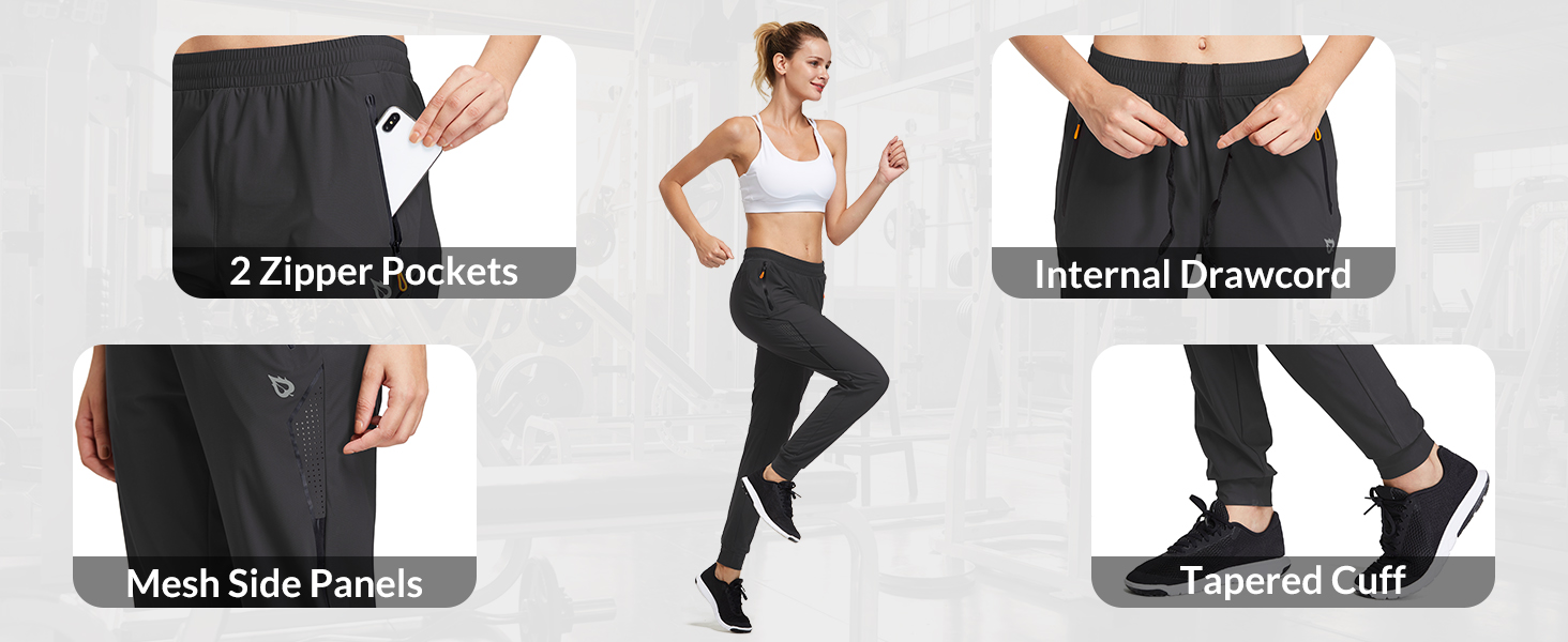 BALEAF Women's Hiking Pants Joggers Workout Athletic Lightweight Quick Dry Zipper Pockets