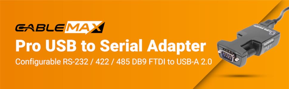The FTDI USB to RS-232/422/485 Pro Grade Adapter by Cablemax offers ultra-fast data rates up to 3M Baud, robust 15kV ESD protection, and fully software-configurable interface settings. Designed for seamless USB to DB-9 serial device connectivity, it ensures hassle-free upgrades and reliable performance in professional environments.