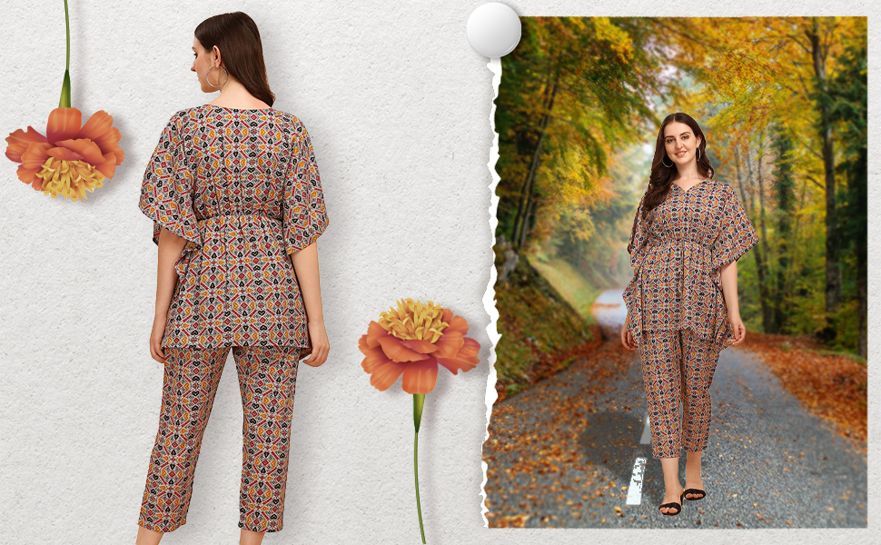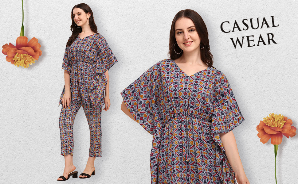 NAINVISH Cotton Blend Kurta Pant Set | Ethnic Kaftan Co Ord Pant Set | Casual Wear Kaftan Pant & Top Set | Fancy Kaftan Top & Pant Set | Women Top & Pant