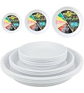 This set of 12 durable black plant saucers comes in three versatile sizes (6, 8, and 10 inches) made from thick, high-quality polypropylene. Designed for optimal drainage, these trays protect your surfaces from spills while being suitable for both indoor and outdoor use. Enjoy peace of mind with our satisfaction guarantee!