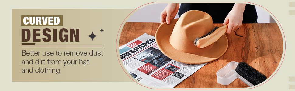 Patelai 2 Pcs Horse Hair Brush Felt Hat Brush Cleaning Kit Cowboy Hat Brushes with Sponge Removes Dust Fuzz and Lint for Shoes, Clothes Furniture Suits(Wooden Color,Wood)