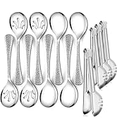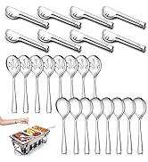 The Teivio Stainless Steel Metal Serving Utensils set includes 9 pieces: 3 slotted spoons (9.6 inches), 3 serving spoons (9.9 inches), and 3 tongs (7 inches). Crafted from high-grade stainless steel, these utensils are durable, rust-proof, and dishwasher safe, making them ideal for a variety of events from casual gatherings to elegant weddings.