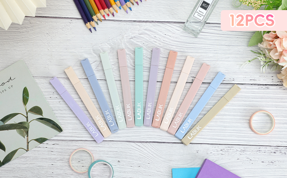 LABUK’s 12-piece pastel highlighter set combines aesthetic appeal with professional functionality. Featuring a smooth, bleed-free water-based ink and an ergonomic square design, these highlighters deliver quick-drying, smudge-proof color in 12 soft shades. Perfectly suited for detailed note-taking, journaling, and office use, they offer versatile chisel tips for precise marking without hand fatigue.