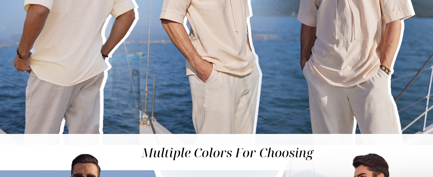 COOFANDYMen Linen Tunic Viking Meditation Shirt 3/4 Sleeve V Neck Beach T Shirts