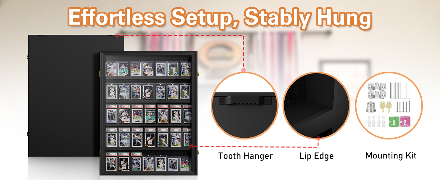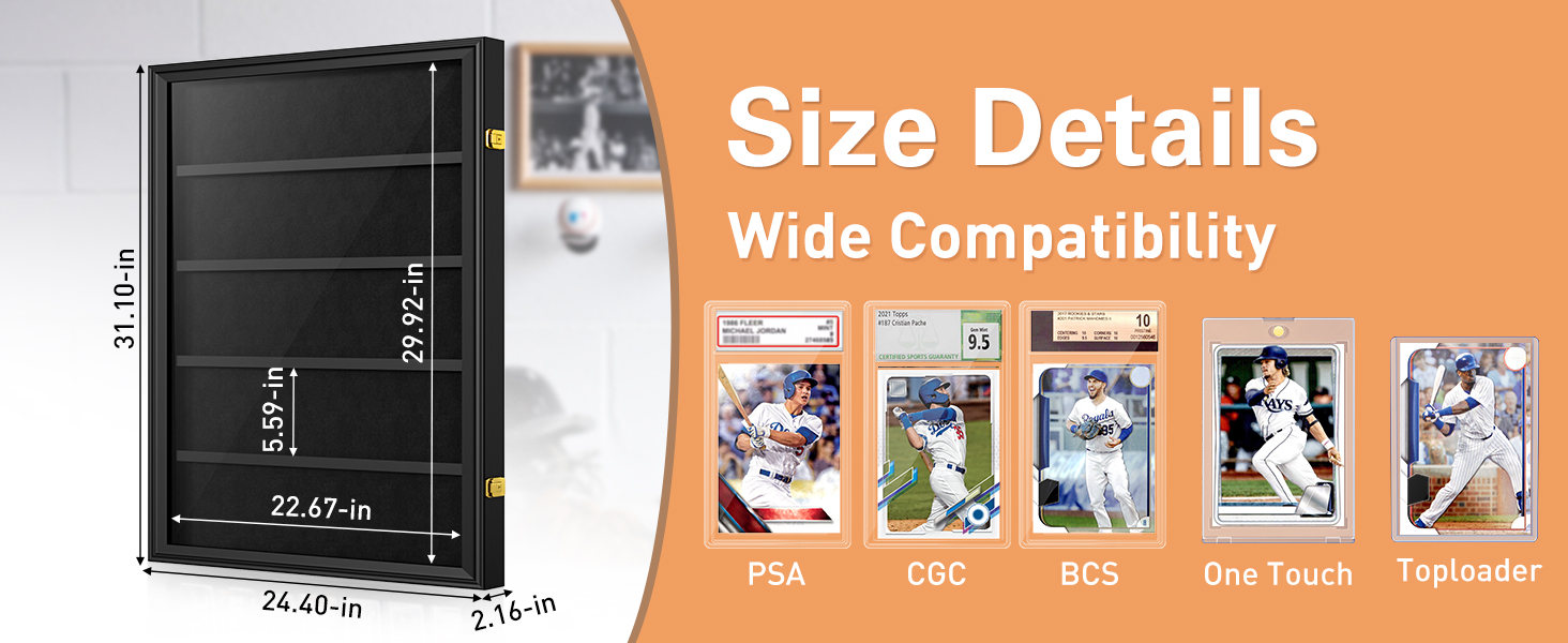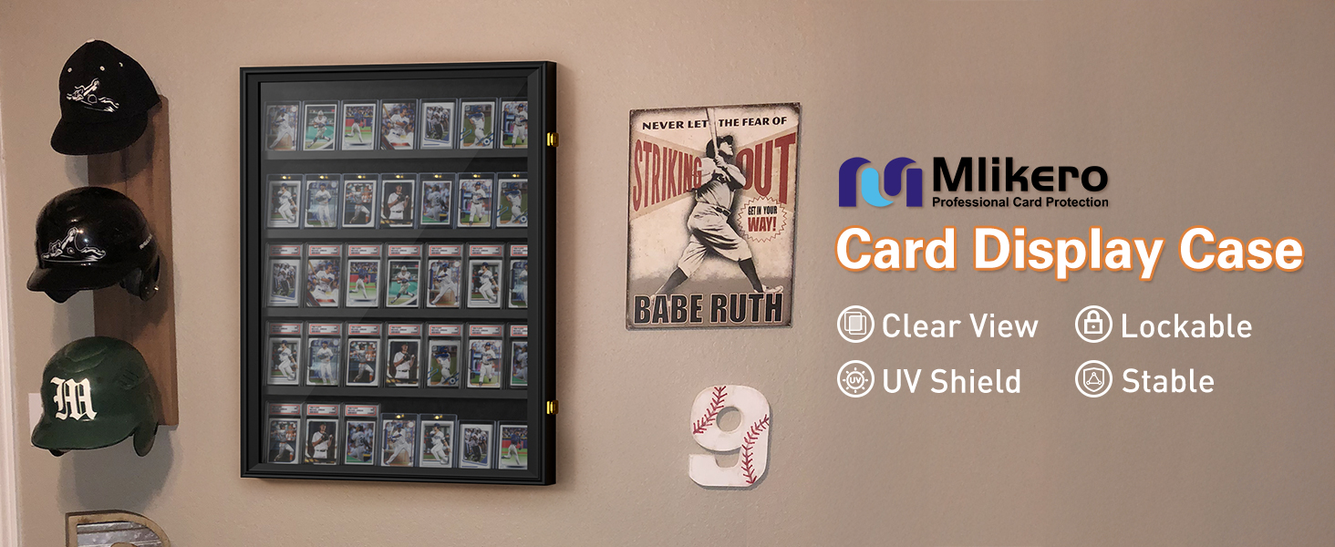 Mlikero Baseball Card Display Case, 35 Graded Card Display Frame Lockable, Trading Card Display with UV Protection Sports Card Display Case for Baseball Cards, Football Cards, Sports Cards