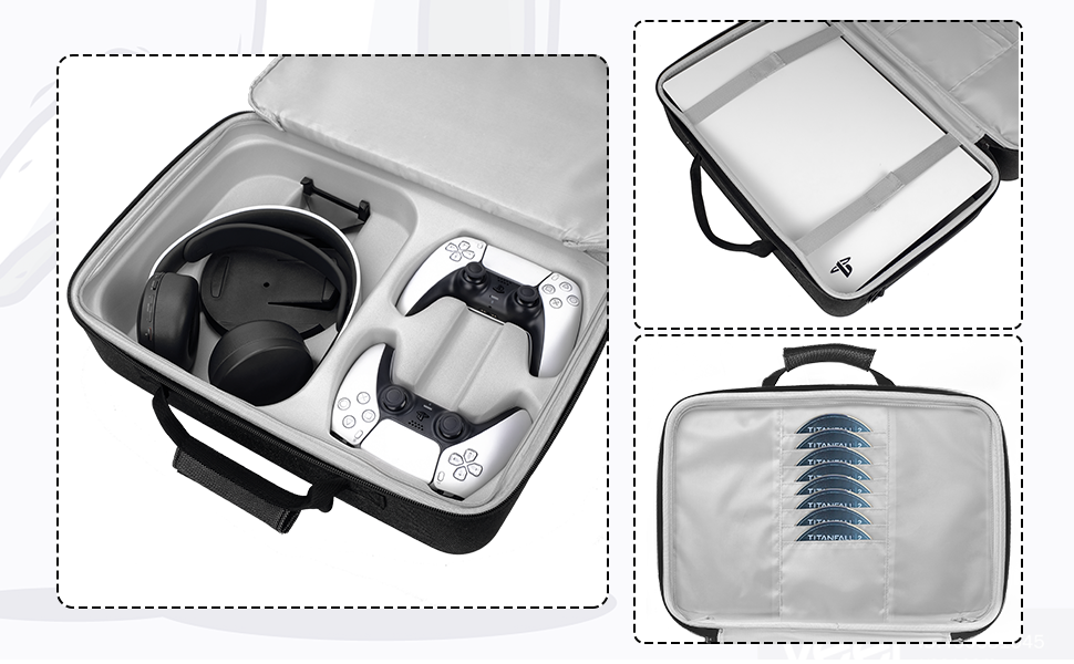 - ORGANIZED STORAGE - Tri-fold layout with dedicated compartments keeps your PS5, headset, cables, and discs neatly secured and easy to access.