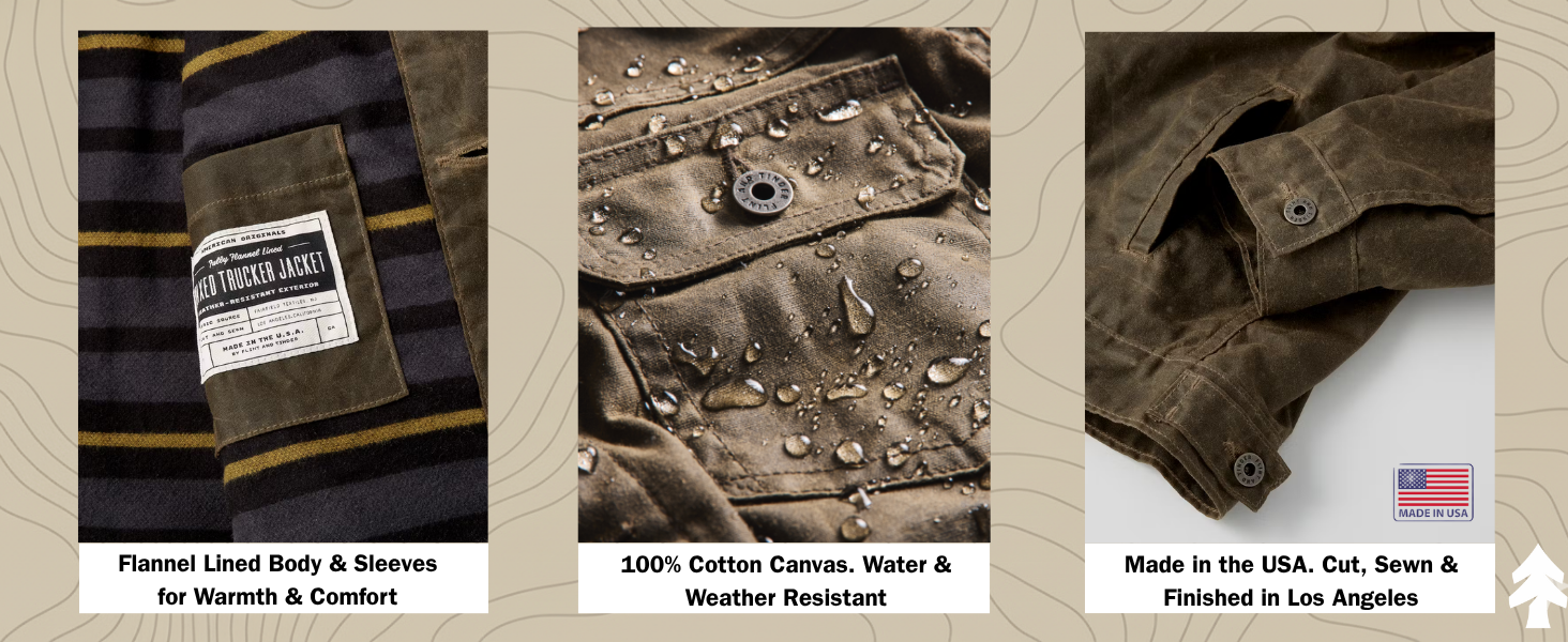 Huckberry Flint and Tinder Men's Flannel-Lined Waxed Trucker Jacket, Water & Weather Resistant Mens Jacket