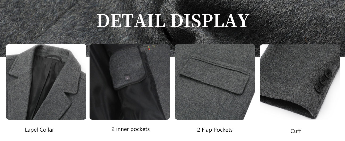 YOUTHUP Mens Winter Coat Slim Fit Wool Overcoat Knee-Length Elegant Trench Coat Business Peacoat