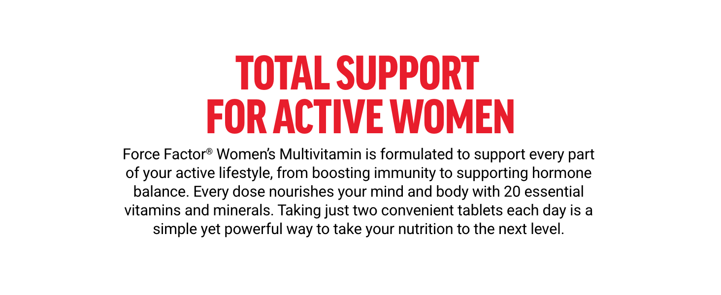 Force Factor Women’s Multivitamin delivers a potent blend of 20 essential vitamins and minerals, including Ashwagandha and Chasteberry, specifically formulated to support energy, hormone balance, immunity, and gut health. Made in GMP-certified US facilities with no artificial additives, it’s the clean, comprehensive supplement for active women seeking holistic daily support.
