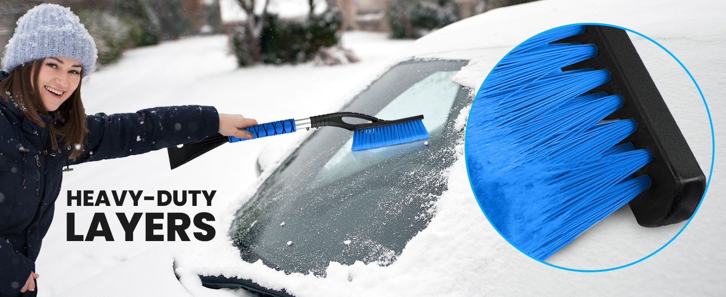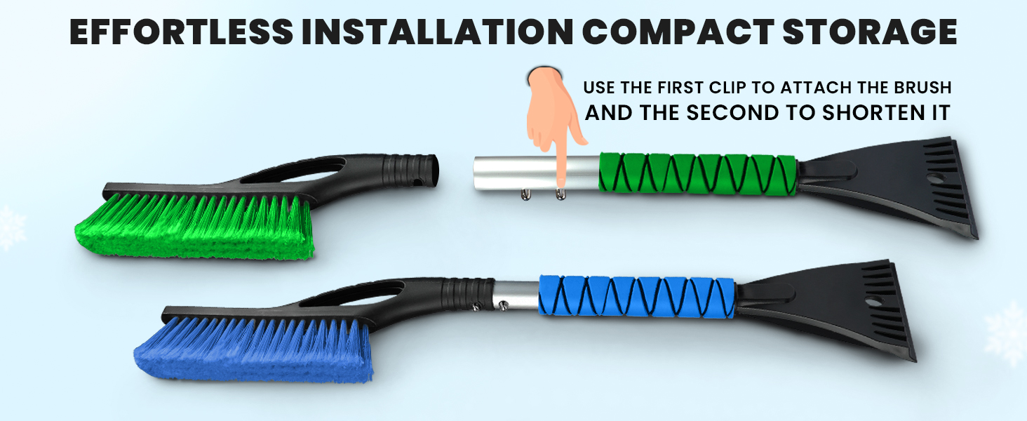 EcoNour is a robust 27-inch all-in-one snow removal tool combining a soft-bristled brush and a durable ice scraper made from aluminum and ABS plastic. Its specialized knuckle design efficiently breaks thick ice without damaging glass, while detachable parts offer easy storage and handling. Available in vibrant colors, it’s designed to fit all vehicle types, making winter car care effortless and stylish.