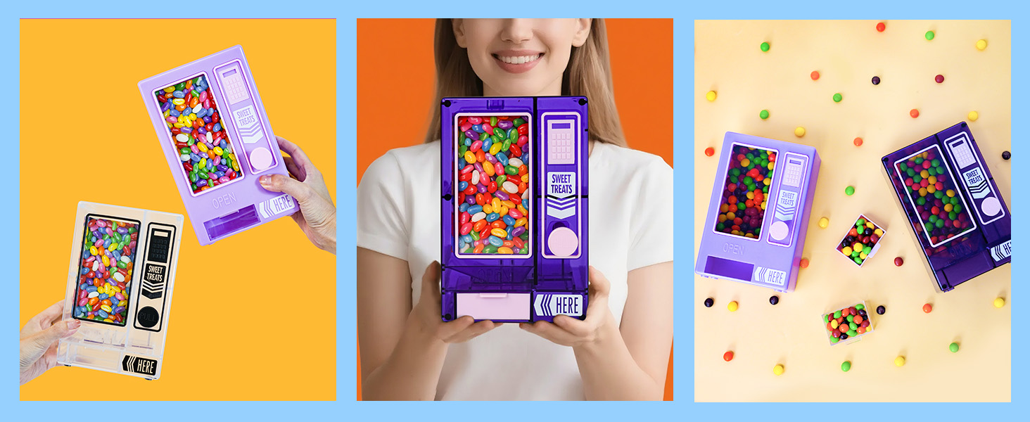 The YOBRO Candy Dispenser is a manual, purple desktop vending machine designed to dispense mini candies and small snacks with a simple handle pull. Easy to clean and reassemble, it combines playful style with practical hygiene, making it a perfect gift or fun addition to any workspace or home.