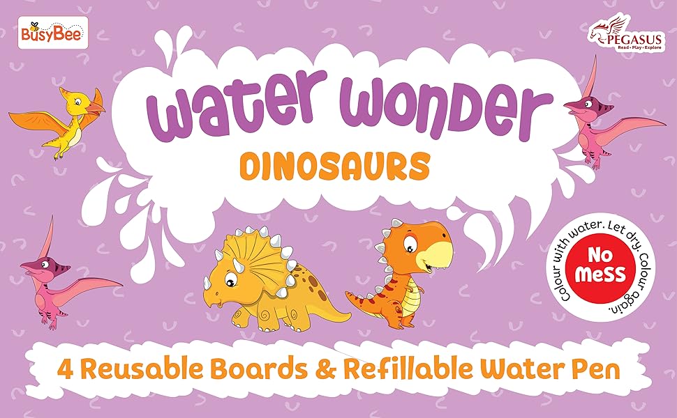 Reusable Magic Water Coloring Book For Kids, Educational Fun Time for Kids, Mess-Free Art with Quick Dry Technology (Dinosaurs Theme | 4 Reusable Coloring & Activity Boards | 1 Refillable Water Pen)