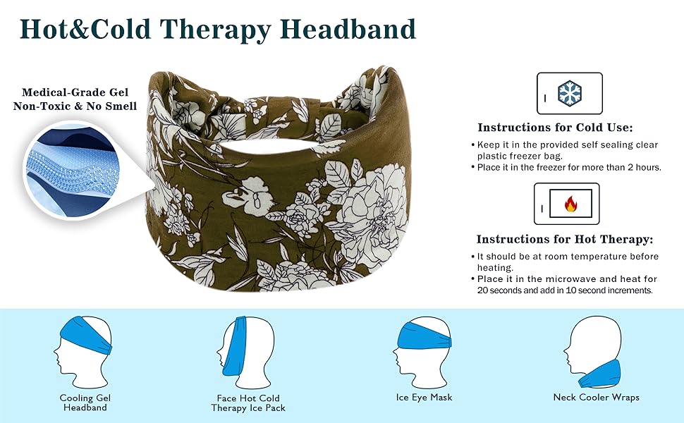 I have been using cold washcloths when I get a migraine but they aren’t very helpful when I have a migraine coming on and still need to attempt to be functional.This helps with this. It gets and stays cold, a little too cold at first so I wear it over my hair more on the top of my head until it isn’t TOO cold, then slide it down onto my forehead.It’s great to be able to wear on neck and over eyes as well.Quality made item with soft comfortable material. And I am not embarrassed to wear in public if need be as it has a stylish look as well.I will be buying more of these and recommending them to others!