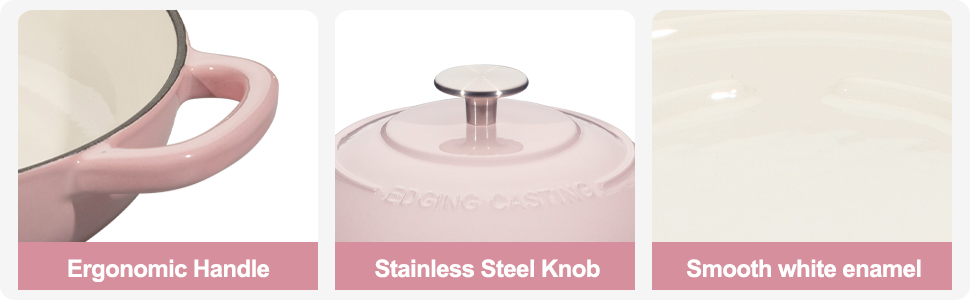Enameled Cast Iron Dutch Oven Pot with Lid, Round Bread Oven for Homemade Sourdough Bread Baking, 6 Quart, Pink