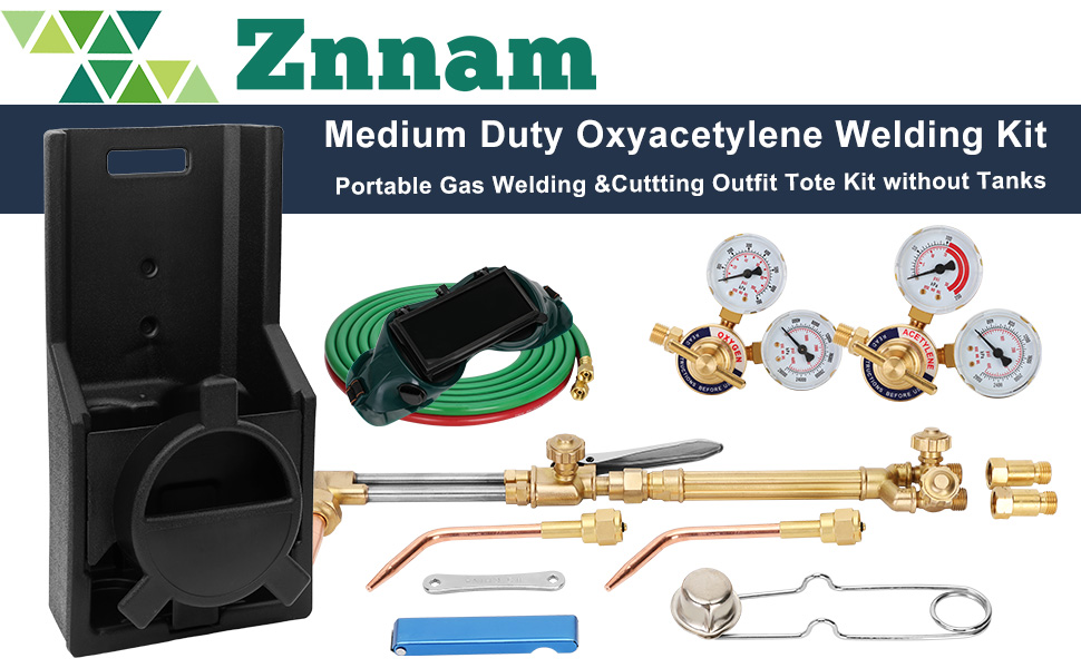 This 17-piece medium duty oxy acetylene welding kit features high-quality brass components, CGA540 oxygen and CGA200 acetylene regulators, and a balanced ergonomic tote for easy transport. Designed for cutting up to 6 inches and welding up to 1/2 inch, it’s a versatile, all-in-one solution for welding, brazing, cutting, and heating tasks—perfect for professionals and serious DIYers seeking reliable performance on the go.