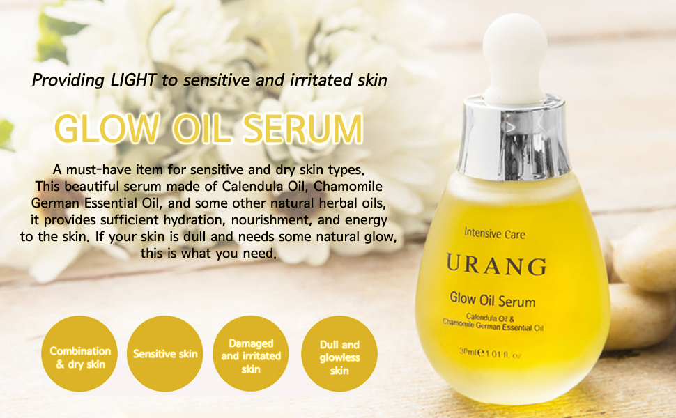 URANG Glow Oil Serum | 99% Natural & 99.25% Organic | Ideal for Dryness, Irritation, and Blemishes | Ultra-hydrating, Soothing, Revitalizing
