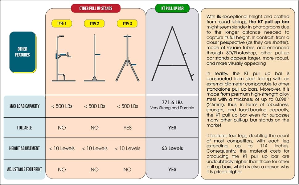The KT High and Foldable Pull Up Dip Station Power Tower is a premium, multifunctional fitness machine crafted from durable alloy steel. It supports up to 771.6 lbs, offers a max adjustable height of 101.57 inches, and folds in just 10 seconds for easy storage. Designed for a wide range of exercises from beginner to advanced, it features quad-directional stability, spacious grip options, and compatibility with various fitness accessories. Ideal for home or outdoor use, it comes with a 5-year warranty ensuring long-lasting performance.
