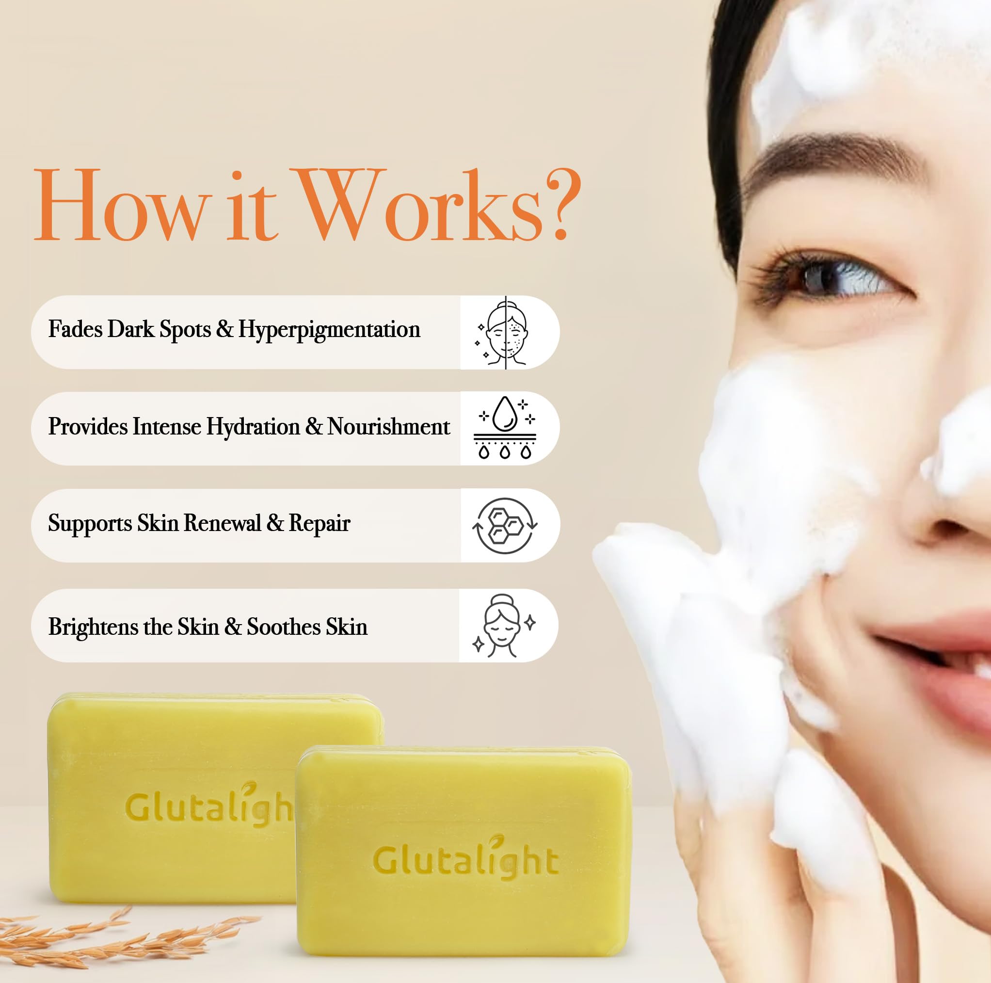 Glutalight Glutathione Rice Water Soap combines Korean skincare powerhouses Niacinamide, Rice Water, and Glutathione to hydrate, brighten, and even skin tone. This dual-pack soap bar gently cleanses while fading dark spots and protecting against premature aging, delivering a luminous, smooth complexion suitable for both men and women.
