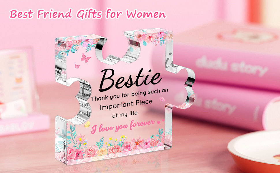 - 👭【Bestie Gifts for Women】Bestie present is designed in a puzzle style with exquisite patterns and warm words: "Bestie, Thank you for being such an Important Piece of my life. I love you forever." The best way to express your love to your best friend. This gift will not only surprise and delight for your friends, but also feel your deep love and gratitude for her