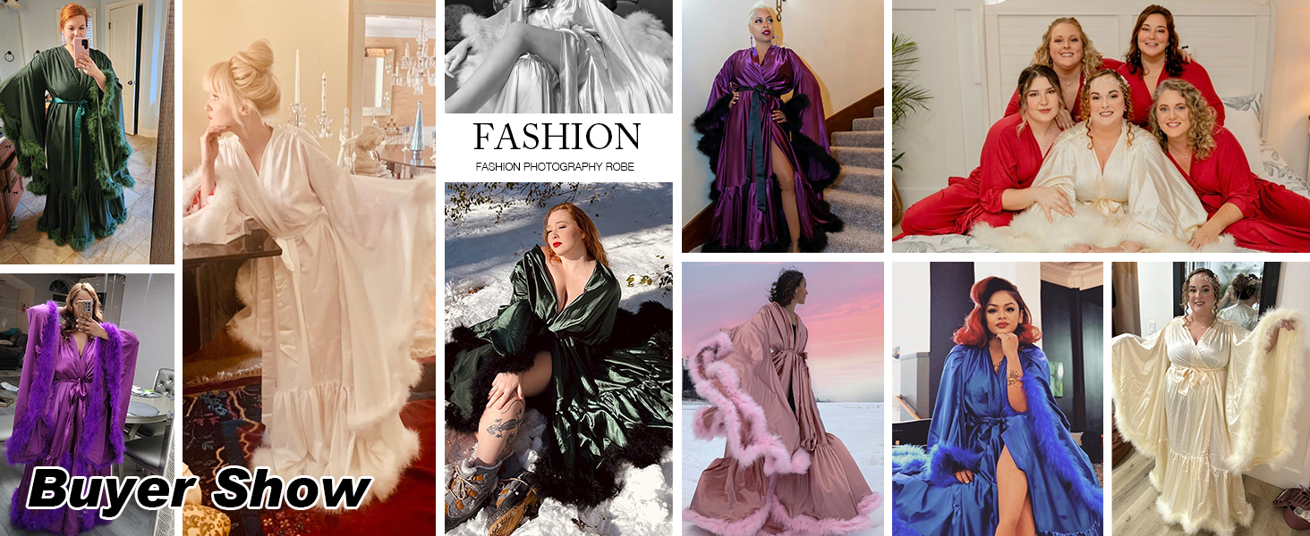 Changuan Feather Bridal Robe Silk Satin Robes Old Hollywood Long Nightgown Lingerie Bathrobe Sleepwear Maternity Photoshoot