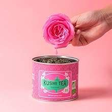 KUSMI TEA Green Rose is an organic, JAS-certified loose leaf green tea infused with natural rose scent. Packaged in a stylish 100g recyclable can, it offers a medium caffeine content and is best brewed at 80°C for 3-4 minutes. Perfect for mindful professionals seeking a graceful, eco-conscious tea experience.
