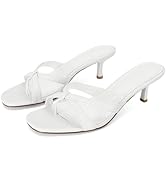 Dsevht Black Kitten Heel Sandals Stiletto Low Heels Slip On Slides Mule Sandal Square Open Toe Dress Shoes for Women, Nude, 7.5