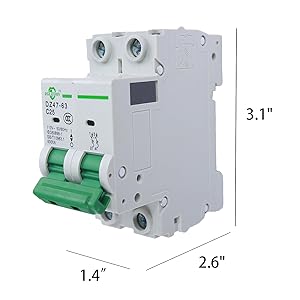 AC Miniature Circuit Breaker, 2 pole 50 Amp, 12-240VAC, 6kA Din Rail Mount Breaker with Thermal Magnetic Trip, DZ47-63 2P, AC Solar MCB