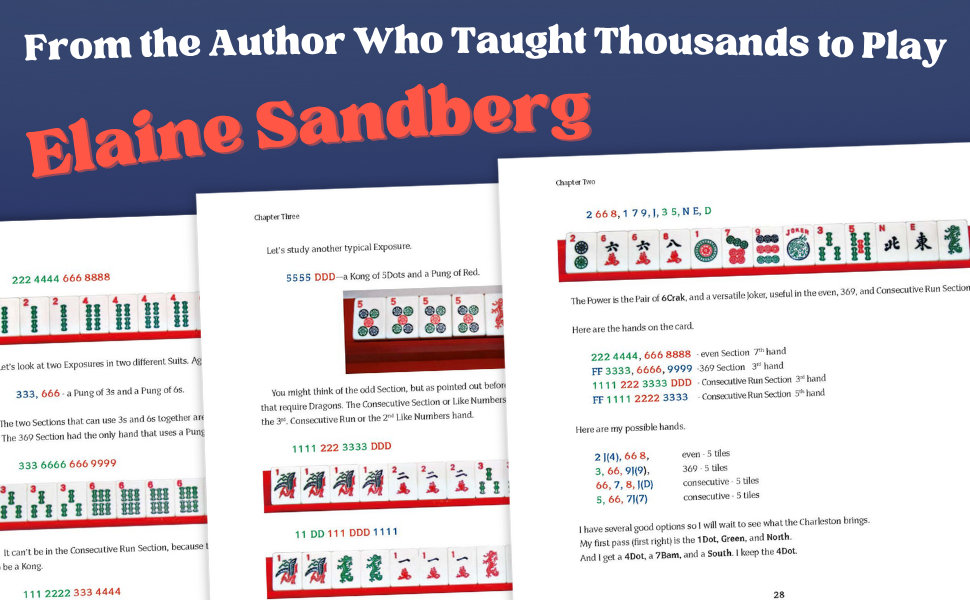 Winning American Mah Jongg Strategies: A Guide for the Novice Player Winning American Mah Jongg Strategies: A Guide for the Novice Player did not provide me with new information. However, and most importantly, it reminded me of things I had previously heard from other players or my instructor, but did not necessarily remember to think about as I played. I have been playing less than a year (5 months with a 5 month break in the middle), and liked analyzing the examples included. I thought that the final questions in the book using a different year's example were especially helpful as it made me think about different hand combinations. The only improvement would have been to include this book's information as an appendix within Elaine Sandberg's earlier book A Beginner's Guide to American Mah Jongg "How to Play the Game & Win"Beginner's Guide to American Mah Jongg: How to Play the Game & Win. But perhaps it is actually easier to pick up a smaller size book to review the various strategies prior to playing. It was definitely worth the time to read and understand its contents. It has helped me to play with more confidence although there are always hands that you just never seem to make. Happy Mah Jongg!